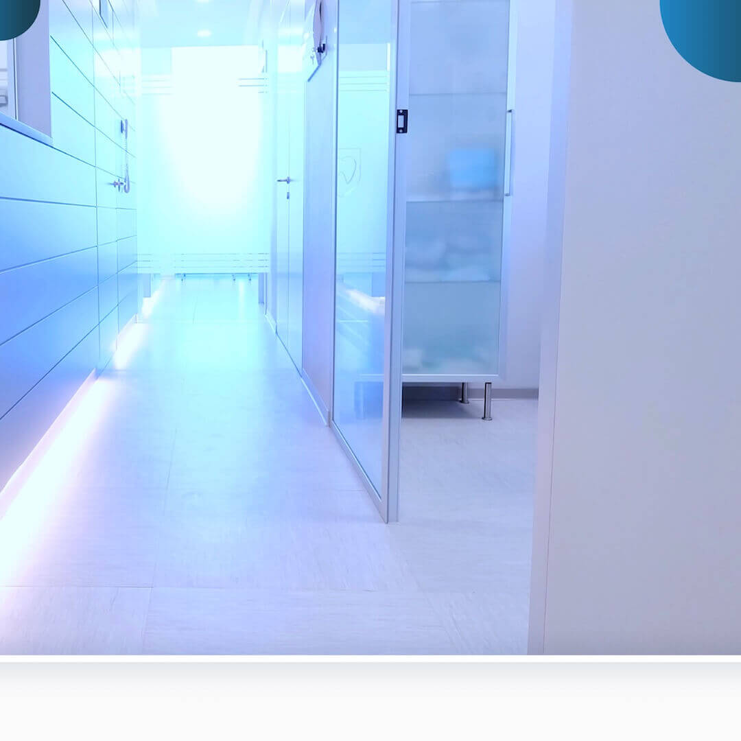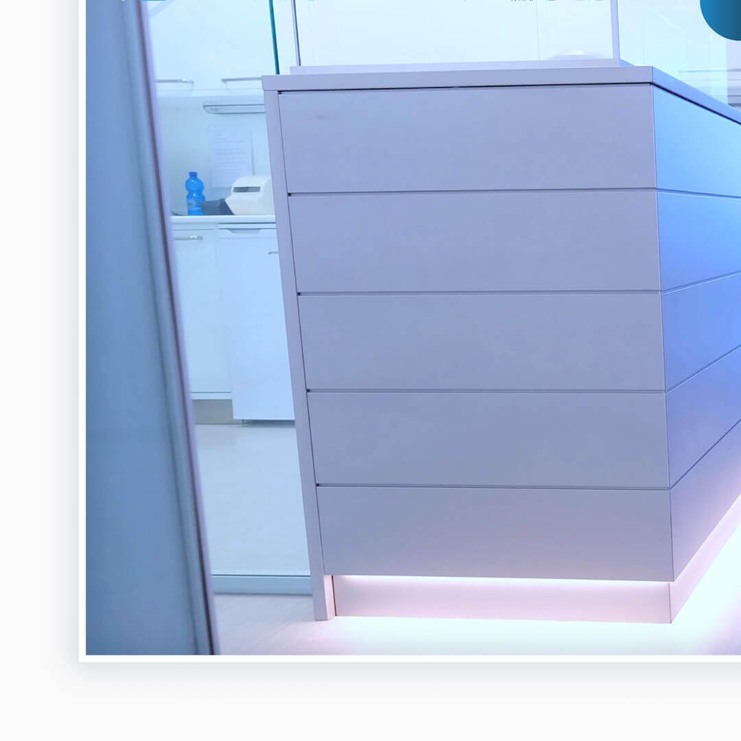 Siamo partiti da un cubo di vetro posizionato in un area commerciale con forte affluenza ed abbiamo sviluppato una clinica di forte impatto.