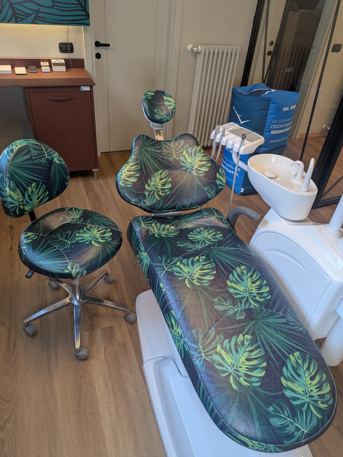 Stampa digitale su tutta la tappezzeria con cuciture Fiber del riunito odontoiatrico ONE