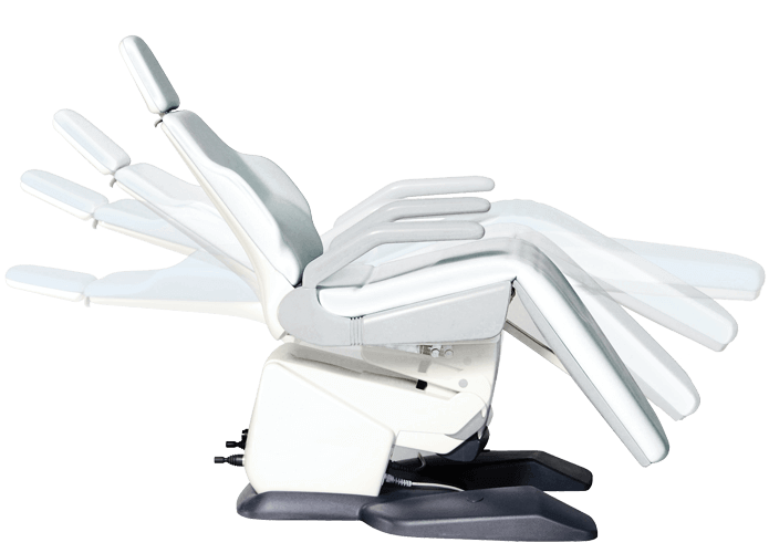 Schienale anatomico e ultra-sottile, con supporto laterale del bracciolo, garantisce un comfort totale al paziente e un facile accesso alla sedia per il professionista. Poggiagambe pieghevole e altezza minima di 51 cm, molto accessibile anche per anziani o disabili.
