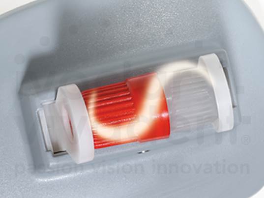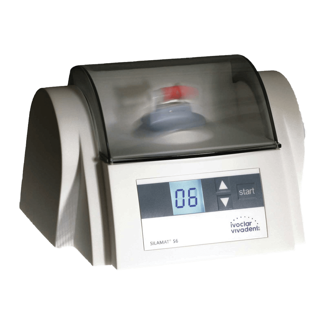 Miscelatore per amalgama. Il design estetico non piace soltanto visivamente, bensì è anche funzionale. Le sue forme rotonde e la pratica cappa estraibile consentono una rapida detersione.