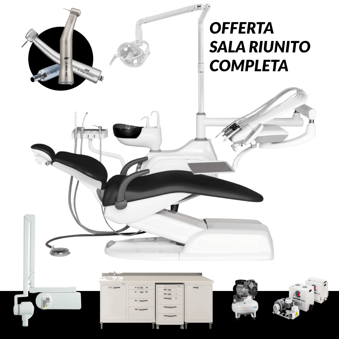 lampada alogena, ablatore, siringa, 3 cord. f.o., comandi completi da postazione operatore e assistente, pedaliera pneumatica con joystick movimentazione a base poltrona, sistema di disinfezione - Micromotore elettrico DEFINITIVE LED