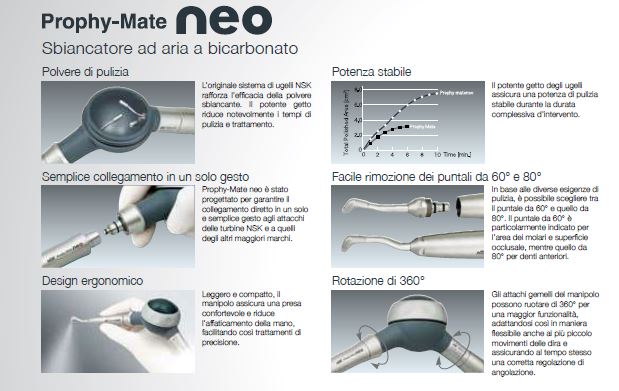 In base alle diverse esigenze di pulizia, è possibile scegliere tra il puntale da 60° e quello da 80°. Il puntale da 60° è particolarmente indicato per l’area dei molari e superficie occlusale, mentre quello da 80° per denti anteriori.
