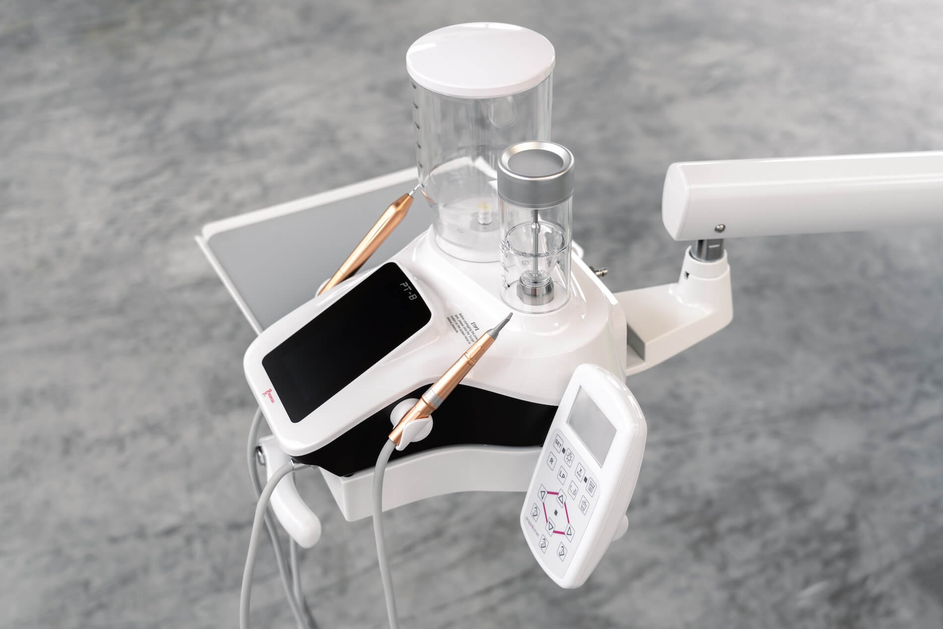 Il dispositivo di profilassi PT-B di Wood Pecker Medical montato direttamente sulla nostra unità dentale! La soluzione specifica per gli igienisti dentali