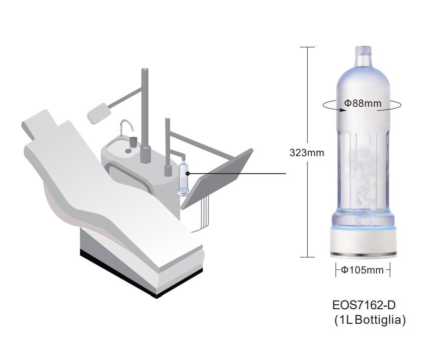 Il sistema è progettato per una facile integrazione nelle tubazioni esistenti del riunito odontoiatrico. Questa tecnologia permette di proteggere dagli agenti patogeni, senza utilizzare sostanze chimiche pericolose.